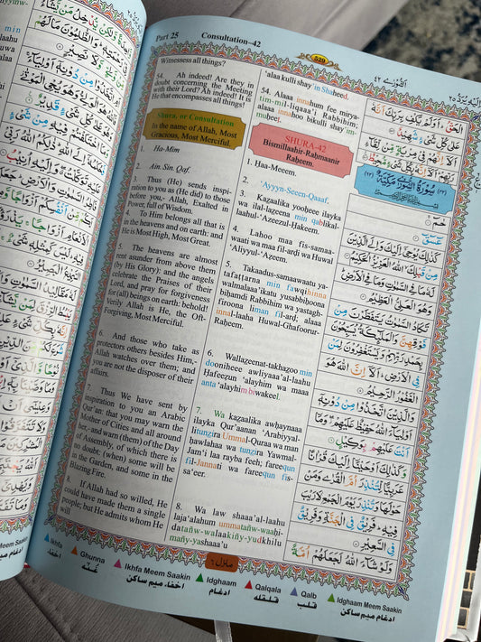 The Holy Quran Colour Coded Arabic Text And Transliteration With English Translation By Abdullah Yusuf Ali | Multicolour